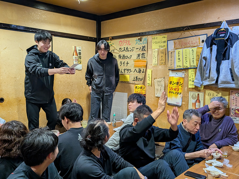 OBOG会からは、皆さまからお預かりした支援金を現役生たちに渡しました。