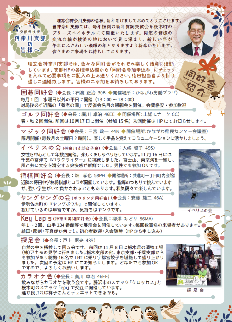 同窓の皆様の交流の輪が横浜の地において更に深まり、新しい年が午年にふさわしい飛躍の年となりますよう祈念いたします。皆さまのご来場をお待ちしております。