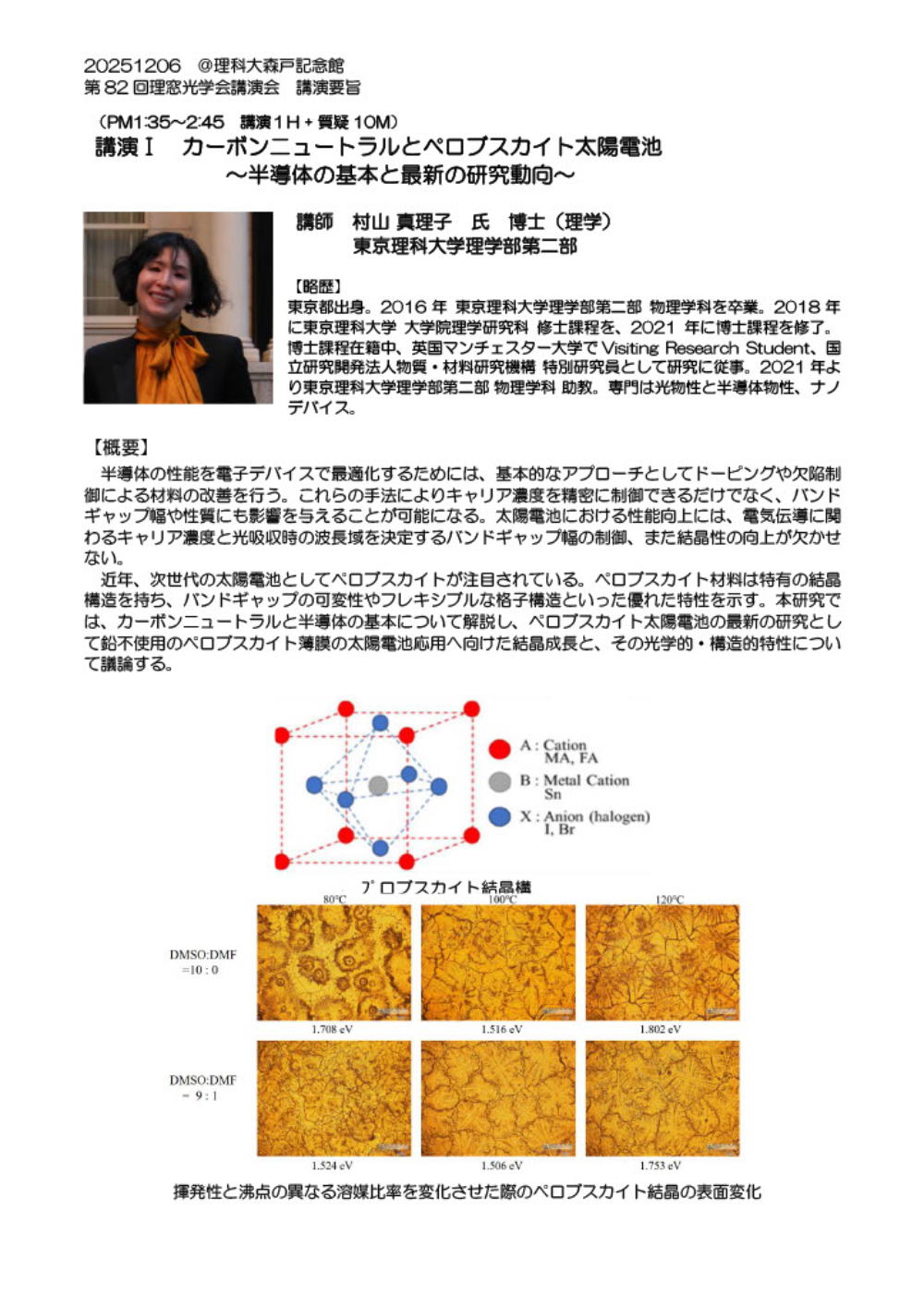 講演1:最先端技術を支える特殊ガラスの世界 ~宇宙・天文分野のガラス開発~