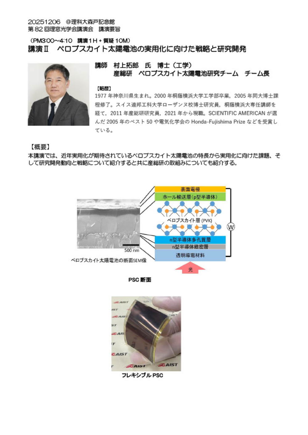 藤嶋先生、落合先生お忙しい中、判り易く講演して頂きありがとうございました。