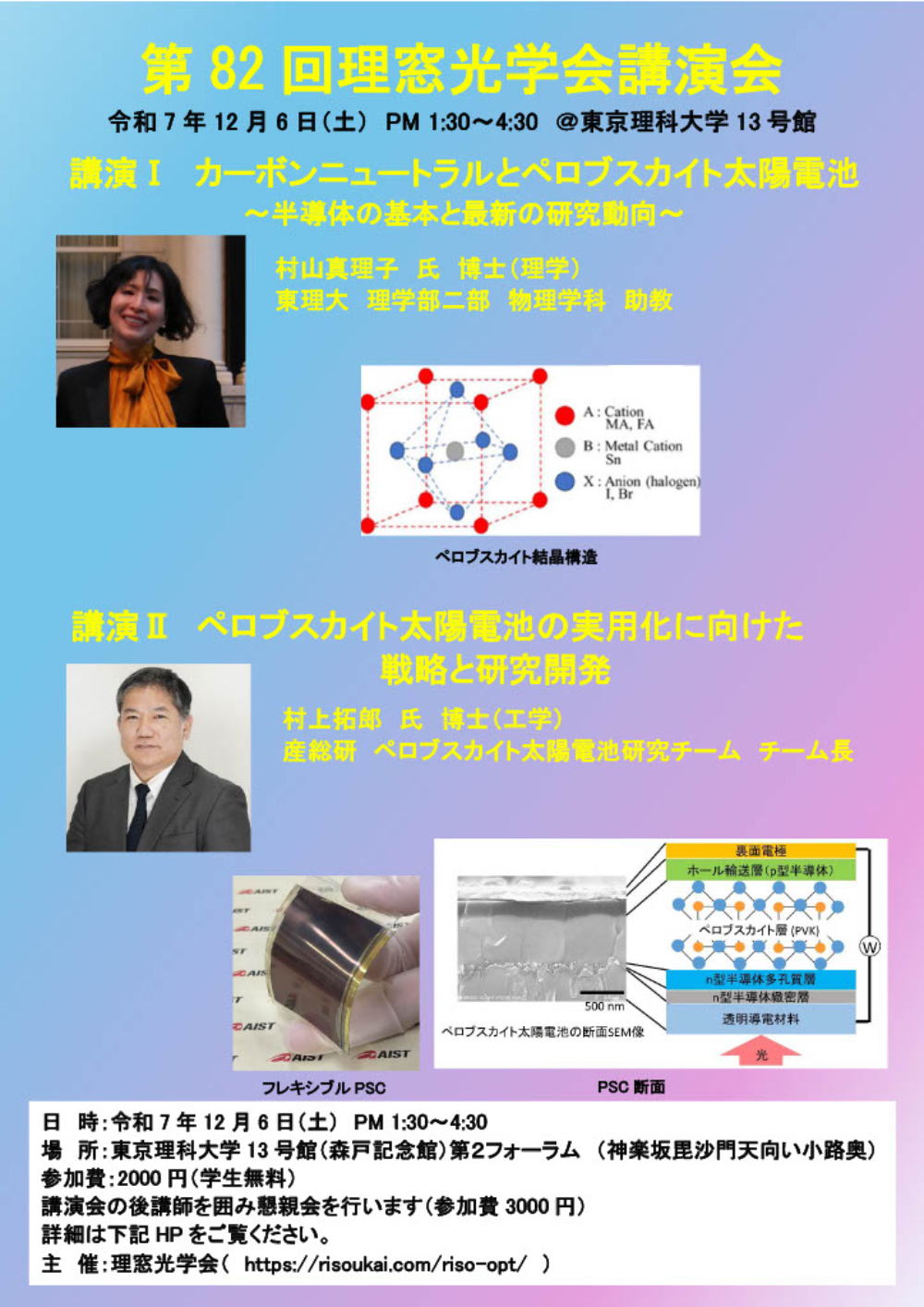 場 所: 東京理科大学葛飾キャンパス