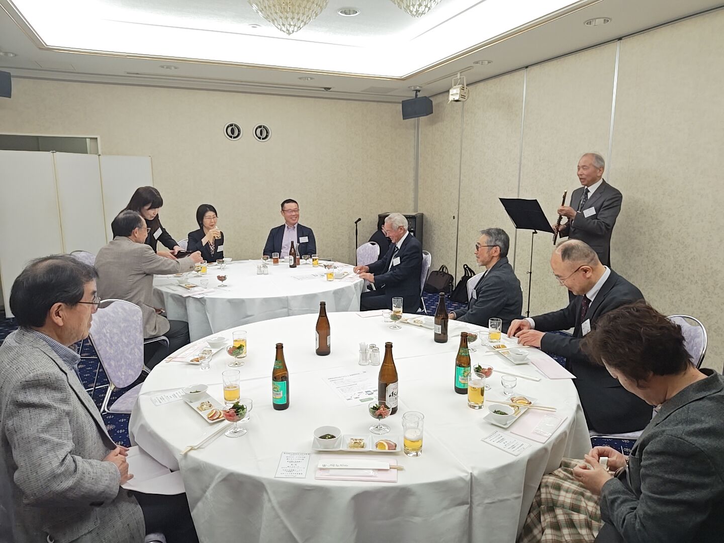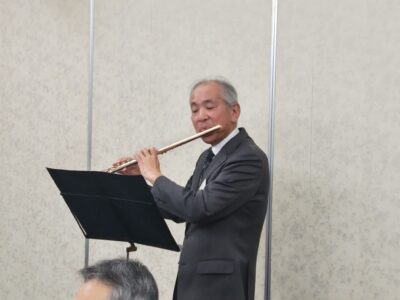 記念撮影の後は会場を移しての懇親会。今年も支部長にはフルートを演奏いただきました。昨年より参加人数は減ってしまいましたが、初めて出席いただいた方も交え、親睦を深めることができたと思います。