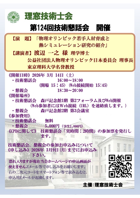 第124回技術懇話会開催 【2026 年 3 月 14 日(土)】
